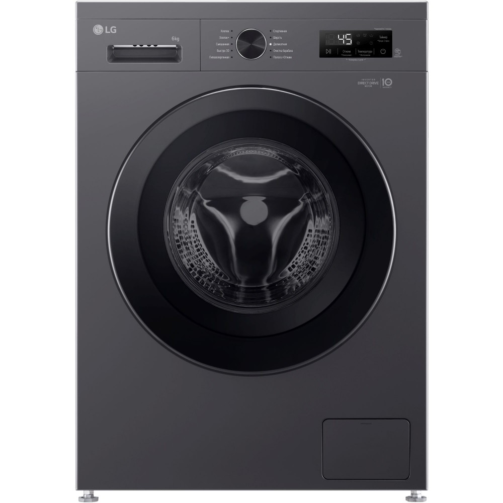 Производитель - Китай, загрузка до 6 кг, отжим 1200 об/мин, глубина 44 см (с люком 50 см), энергопотребление (new) A, прямой привод, 10 программ, 6 Motion (LG) Гарантия - 36 месяцев